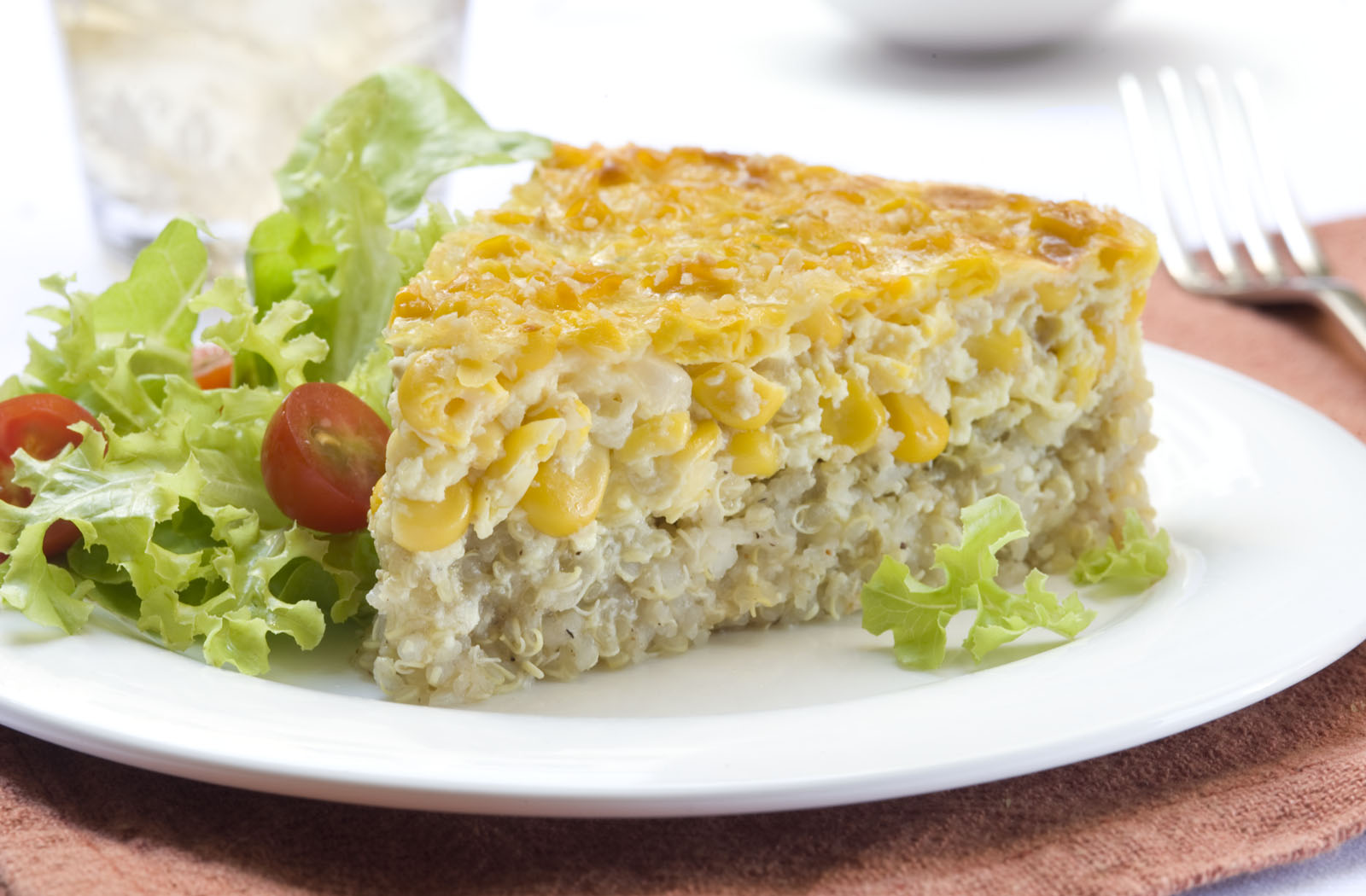 Dorar las cebollas, incorporar los choclos, los quesos, sal y pimienta cocinar durante 5 minutos, incorporar las semillas.Retirar del fuego. Una vez tibio agregar los huevos, integrar. Verter el relleno sobre la base de quinoa, y llevar al horno durante 10 minutos más.